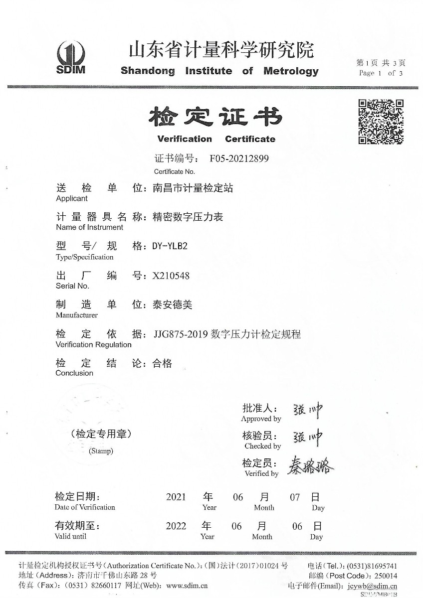 | 上一條:廣東省連平縣質(zhì)量技術(shù)監(jiān)督檢測所-冷鏡式露點儀 | 下一條:便攜式干體爐(-30-150℃)校準(zhǔn)證書 |