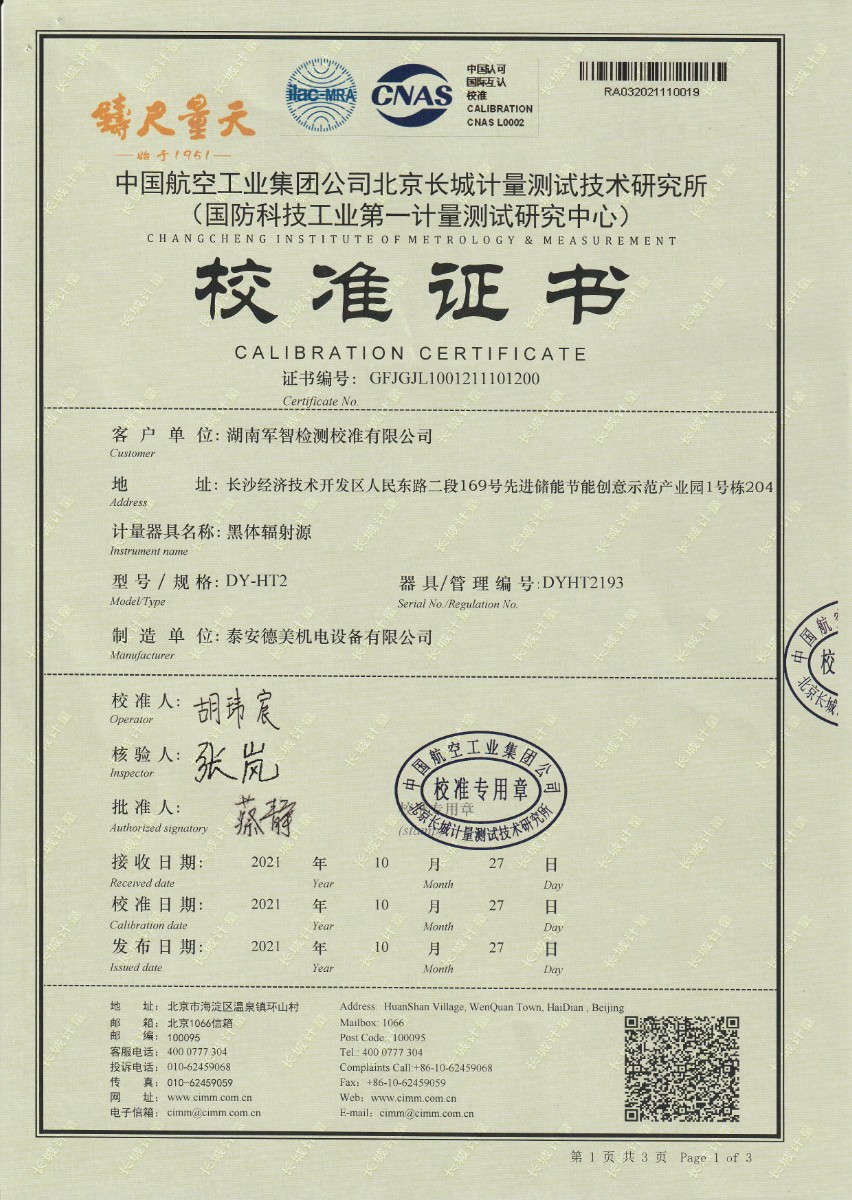 | 上一條:河北華科質(zhì)檢技術(shù)服務(wù)有限公司-黑體輻射源(DY-HT3) | 下一條:溫濕度檢定箱(-5~65℃)校準(zhǔn)證書(shū) |