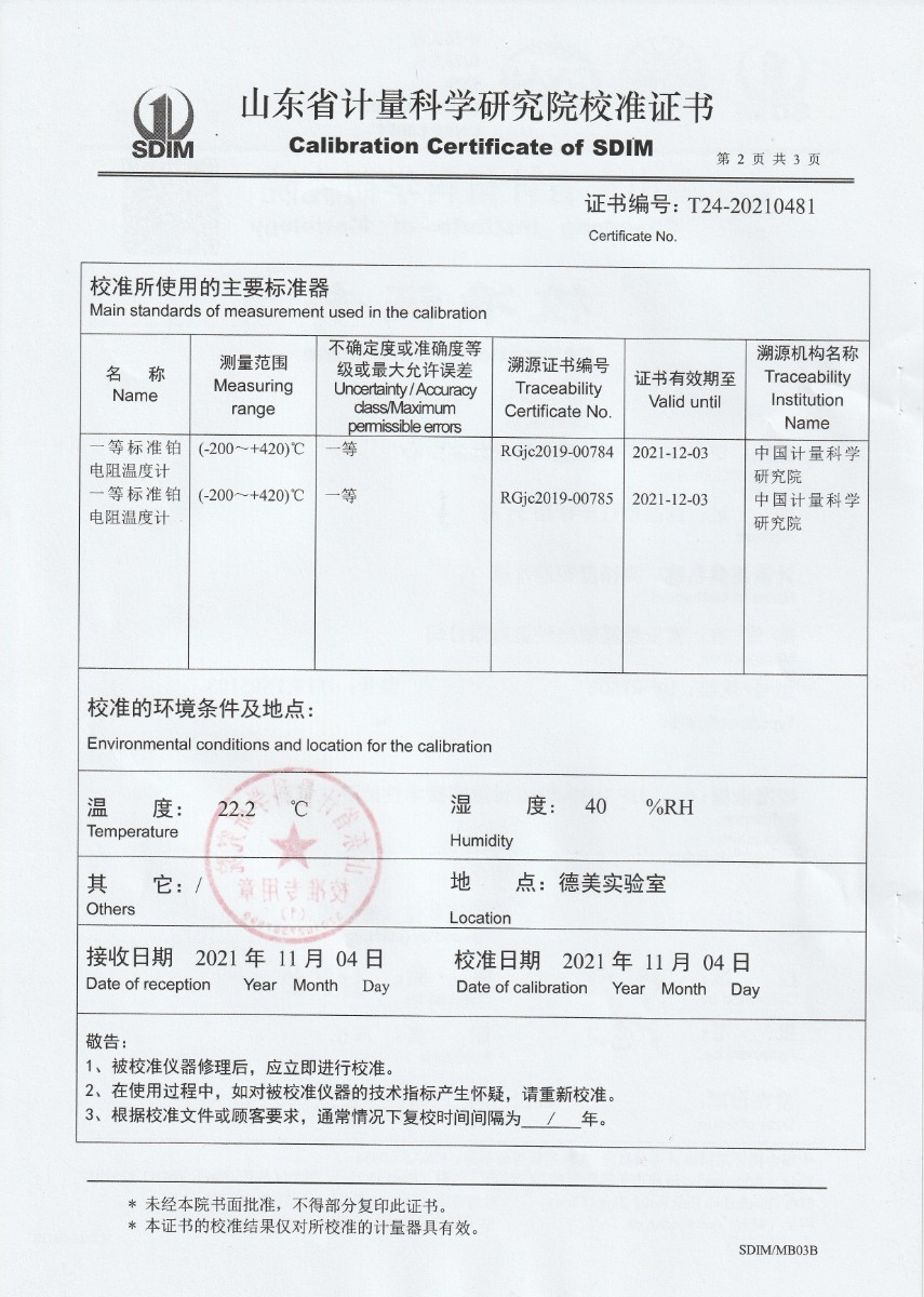 | 上一條:大族激光科技產(chǎn)業(yè)集團(tuán)股份有限公司-高精度制冷恒溫油槽校準(zhǔn)證書 | 下一條:溫濕度檢定箱(-5~65℃)校準(zhǔn)證書 |