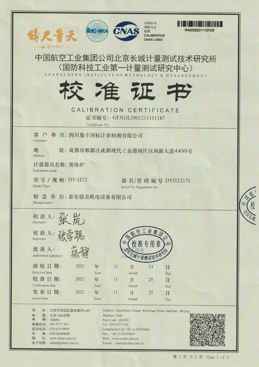 四川易豐國際計量檢測有限公司-黑體爐 2021-12-3 本文被閱讀 14205 次