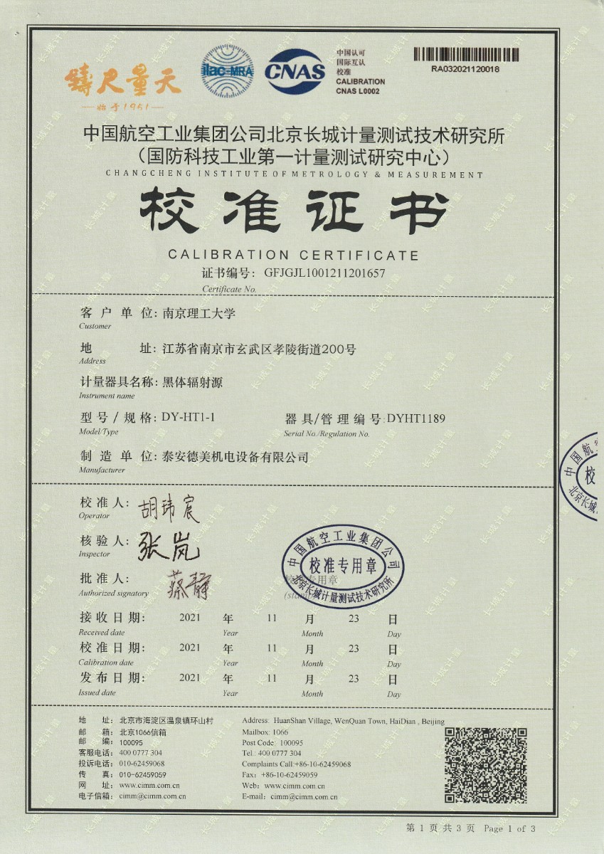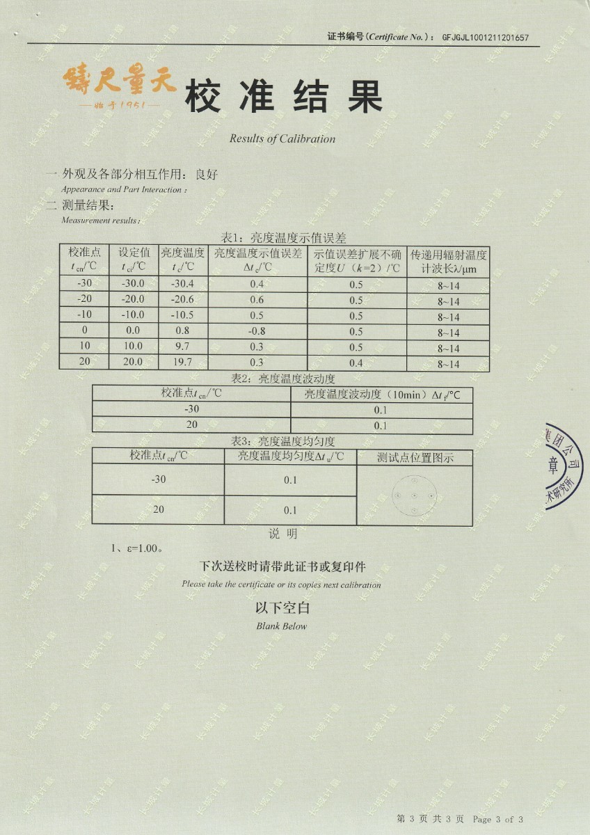 | 上一條:南京理工大學(xué)-黑體輻射源校準(zhǔn)證書25℃ | 下一條:便攜式溫濕度檢定箱(-10-60℃)校準(zhǔn)證書 |