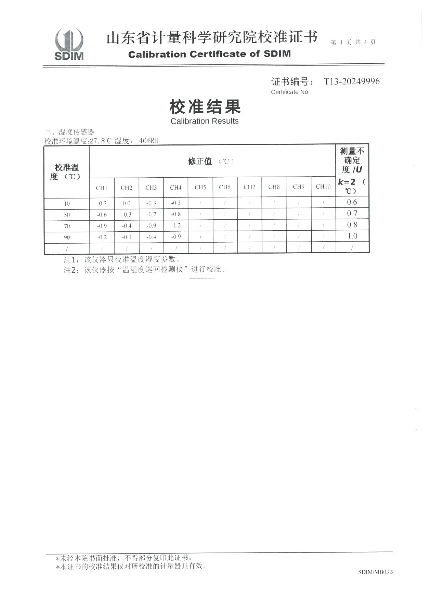 | 上一條:手持式高精度數(shù)字溫度計(jì)校準(zhǔn)證書(shū) | 下一條:便攜式干體爐(-30-150℃)校準(zhǔn)證書(shū) |