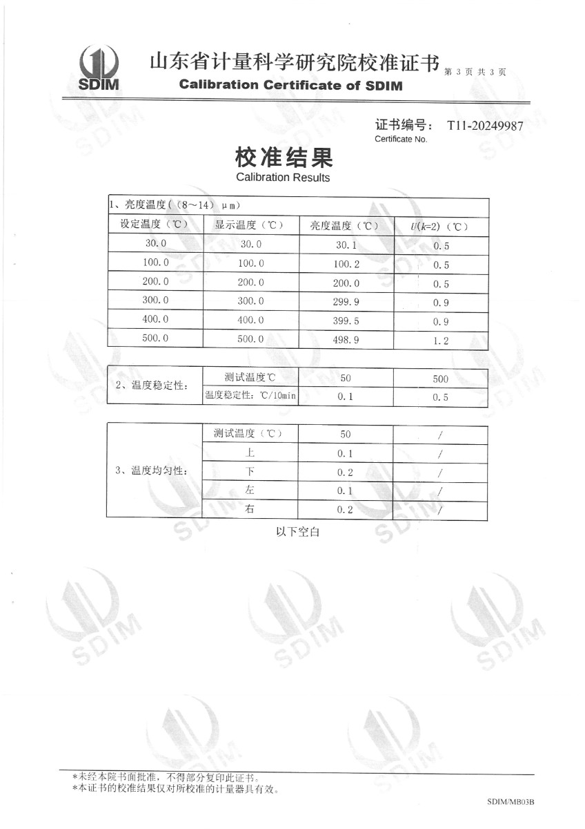 面源黑體爐校準(zhǔn)證書