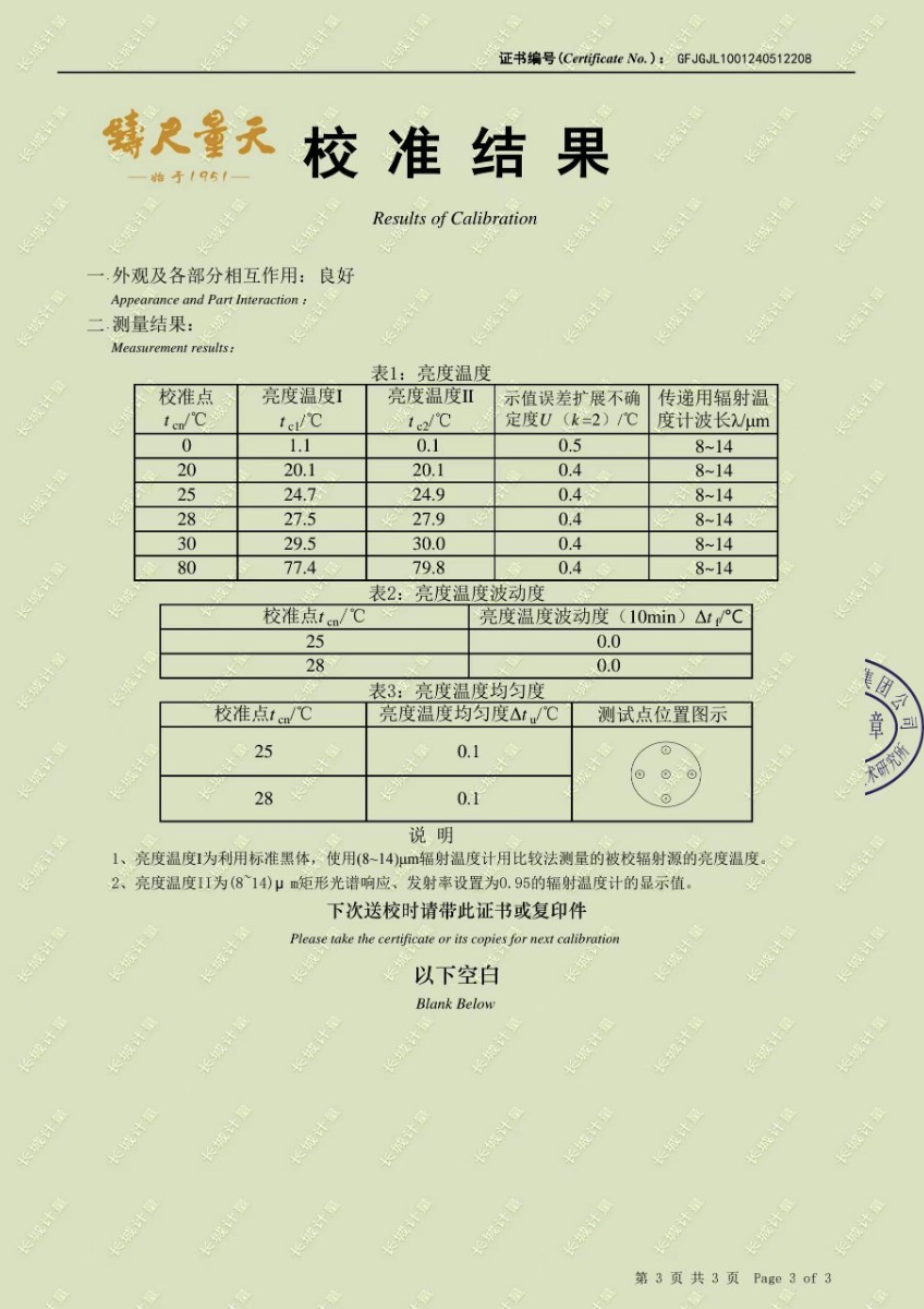 面源黑體爐校準(zhǔn)證書 2024-5-31 本文被閱讀 6533 次