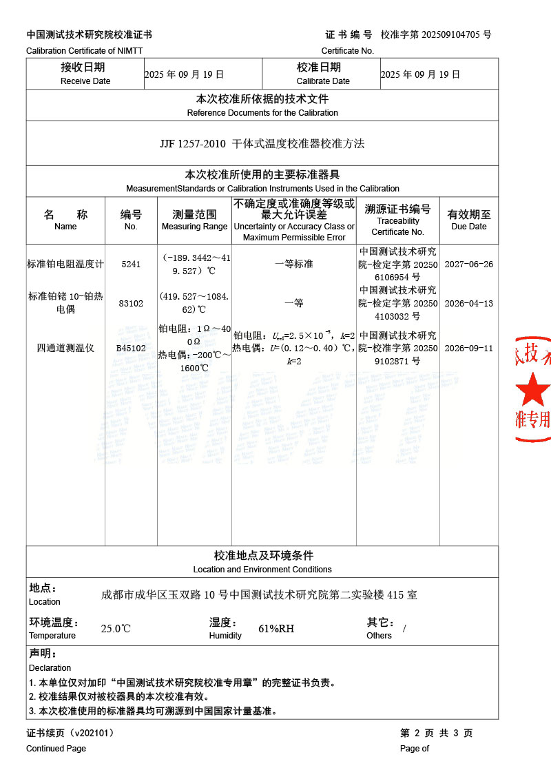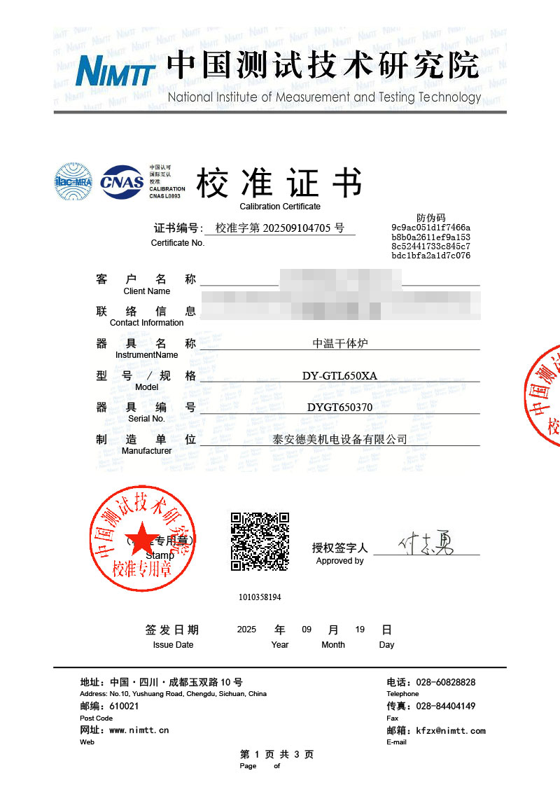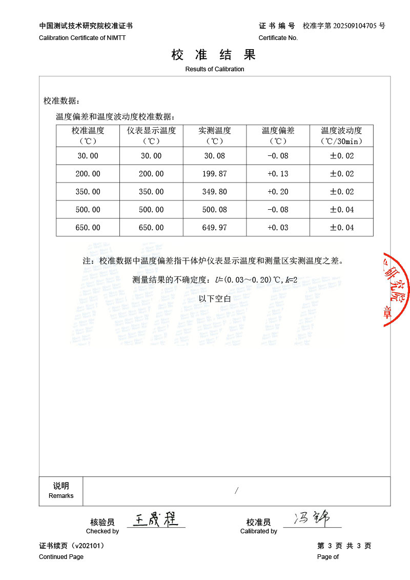 | 上一條:高溫干體爐(300-1200℃)校準(zhǔn)證書 | 下一條:便攜式干體爐(-30-150℃)校準(zhǔn)證書 |