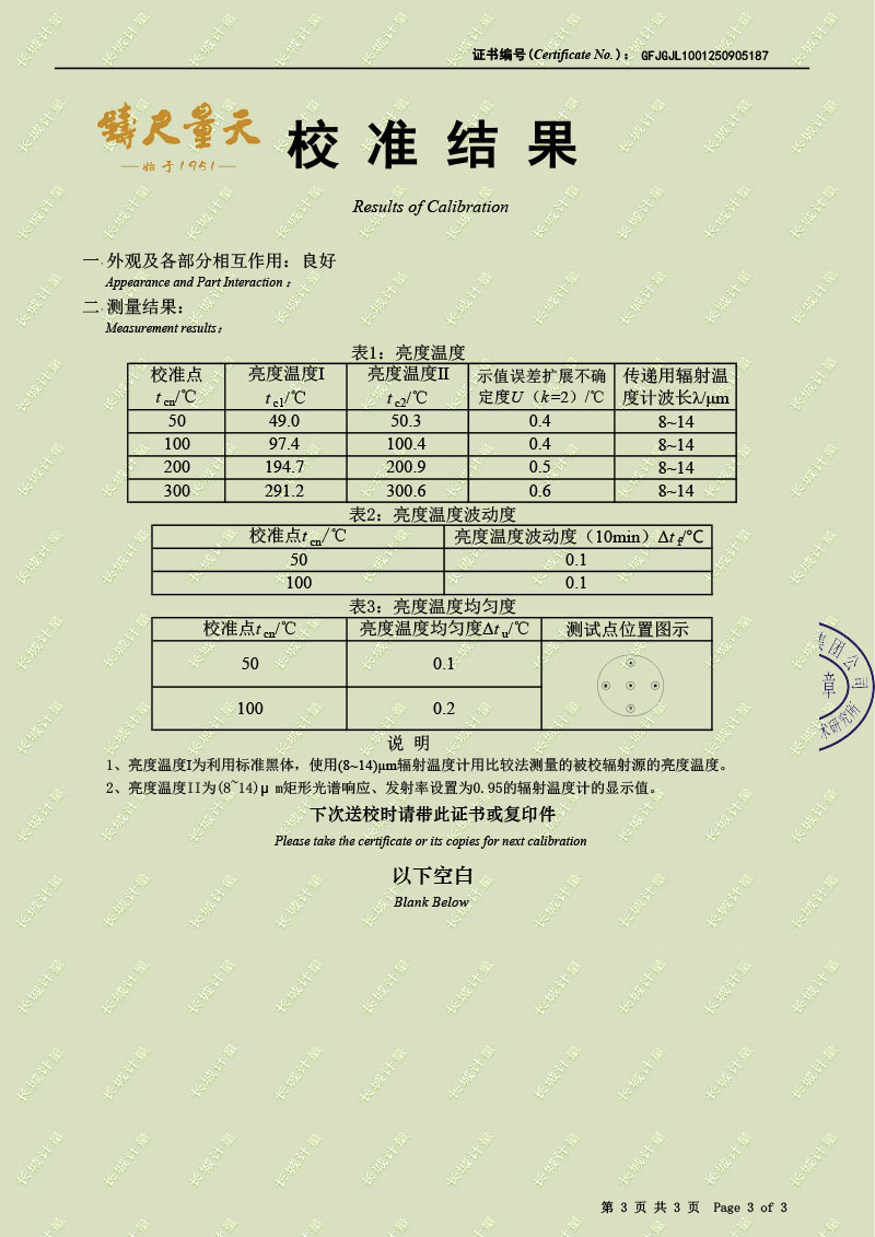 分體式面源黑體輻射源(室溫+5-300℃)校準(zhǔn)證書 2025-9-12 本文被閱讀 1132 次