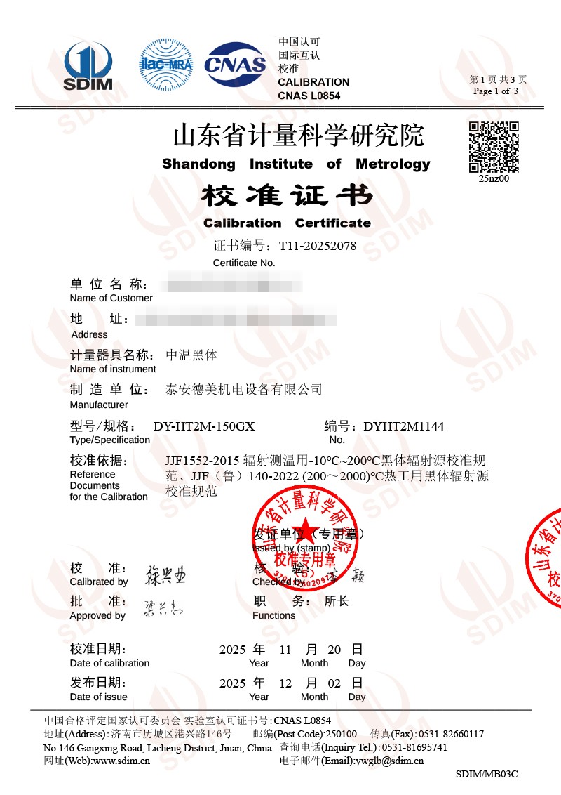 中溫黑體校準(zhǔn)證書 2025-12-4 本文被閱讀 68 次