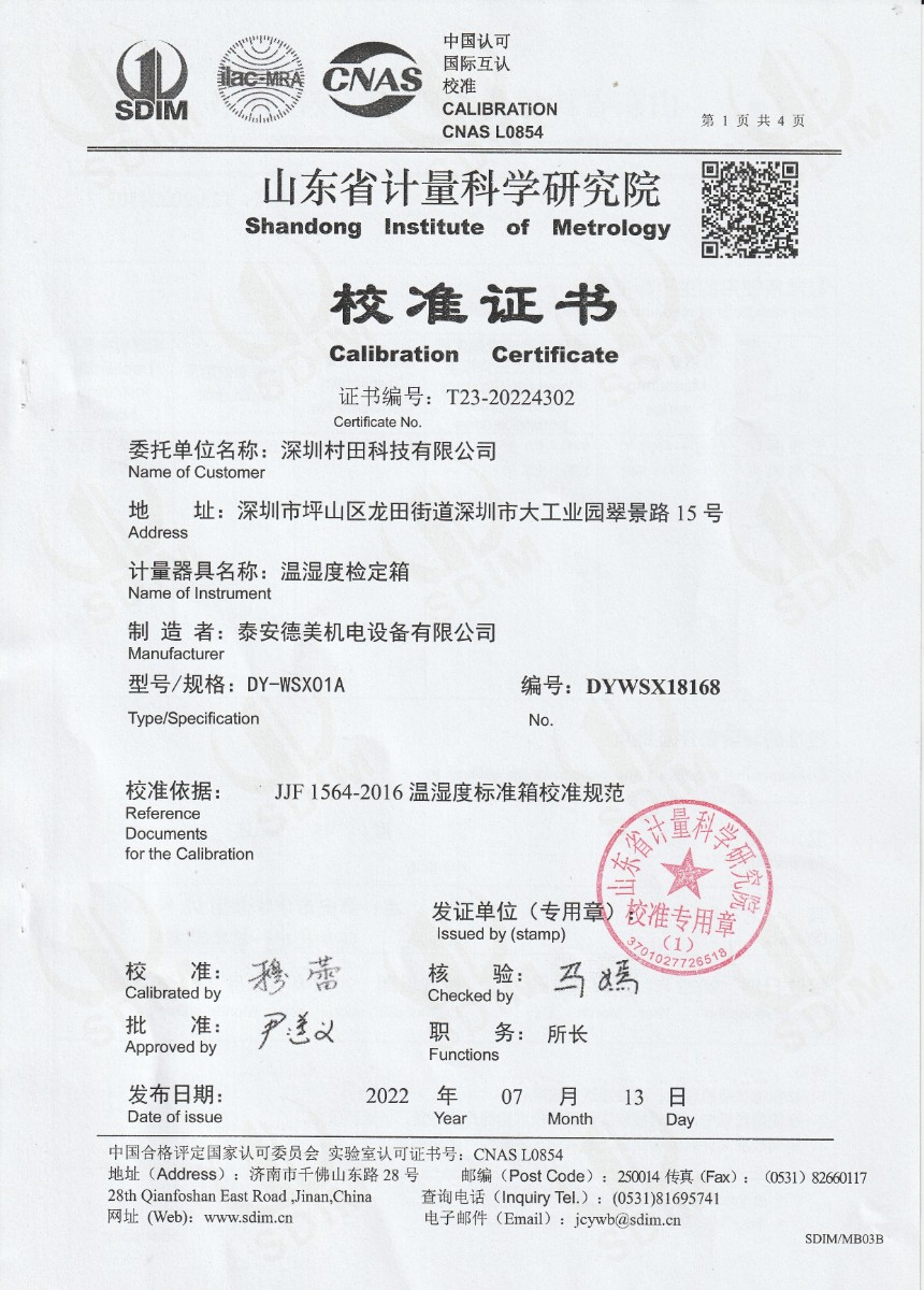 深圳村田科技有限公司-溫濕度檢定箱 2022-8-8 本文被閱讀 12732 次