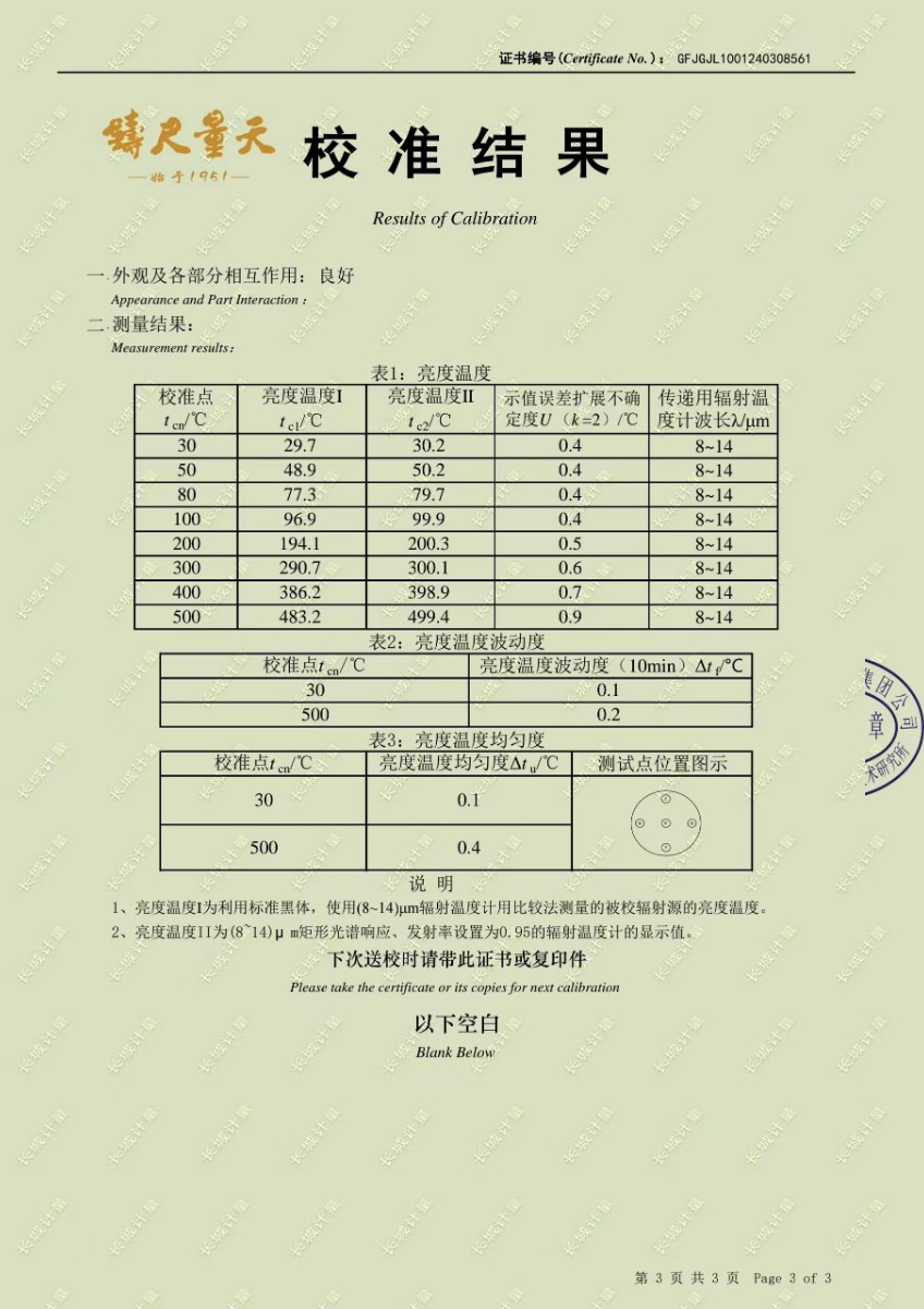 上一條:面源黑體輻射源下一條:溫濕度檢定箱(-5~65℃)校準(zhǔn)證書(shū)