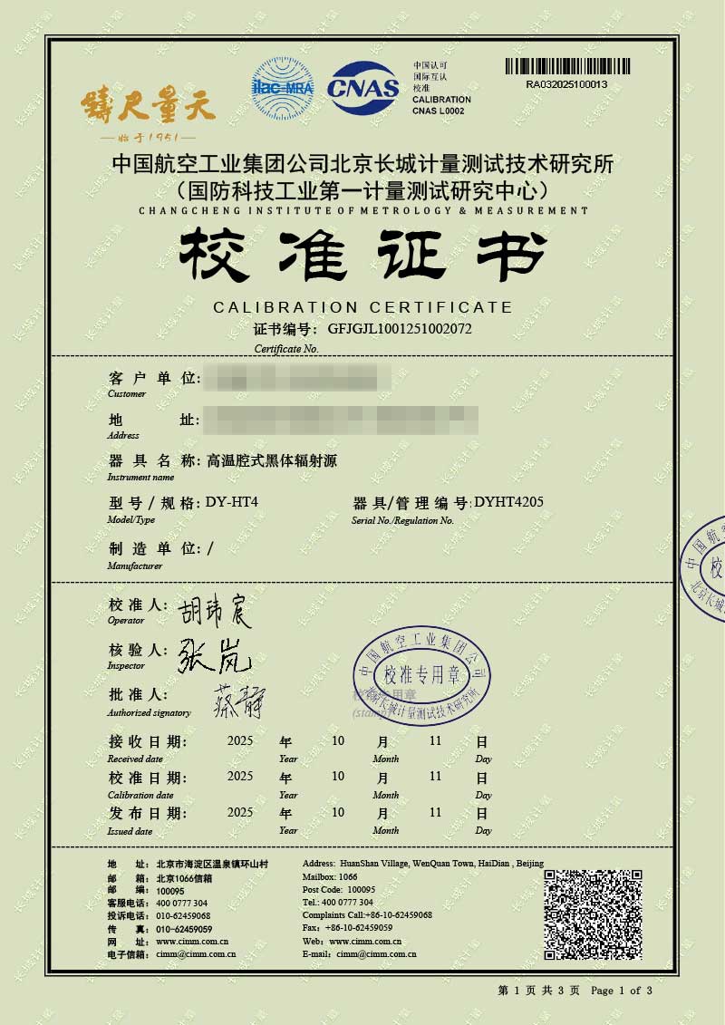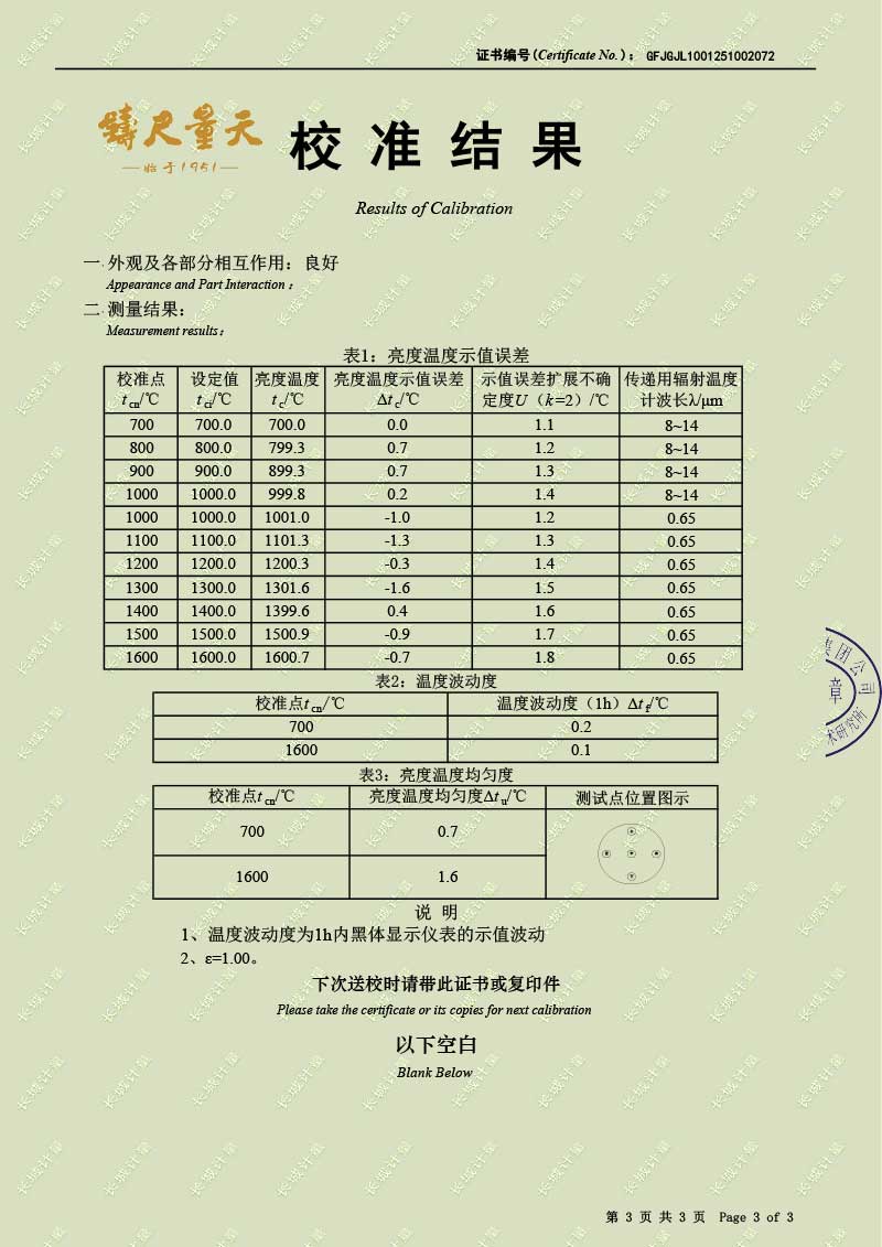 | 上一條:低溫液槽式黑體爐(-40-100℃)校準(zhǔn)證書(shū) | 下一條:便攜式溫濕度檢定箱(-10-60℃)校準(zhǔn)證書(shū) |